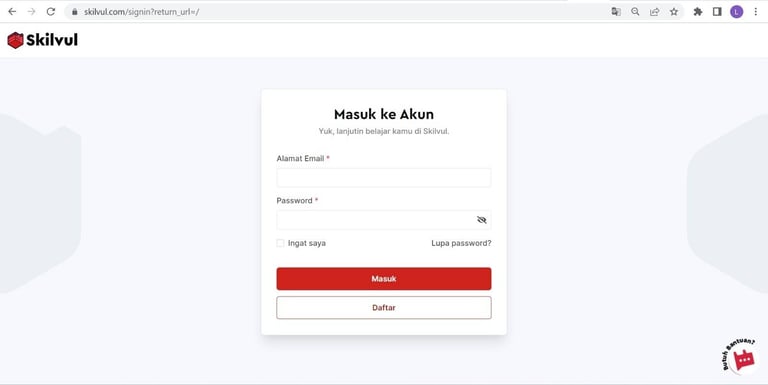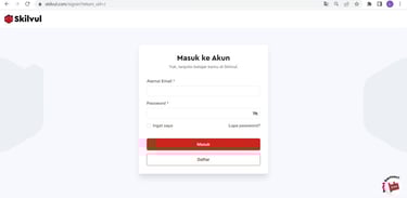 Buka skilvul.com, kemudian login menggunakan akun yang sudah terdaftar di skilvul.com